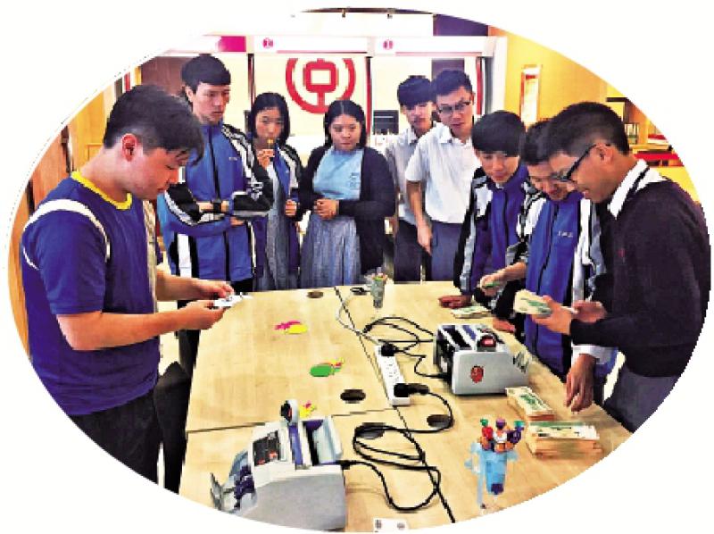 圖:曾璧山中學透過職業訓練局(VTC)課堂體驗活動,讓學生了解銀行業日常運作的情況