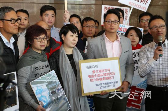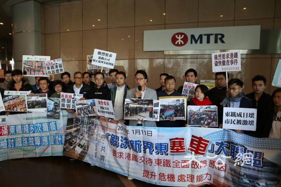 大公網1月11日訊 「解決新界東塞車」大聯盟(以下簡稱「大聯盟」)50位代表今到港鐵總部請議,抗議港鐵東鐵線在今早出現訊號故障,令全線服務暫停近3小時,嚴重影響了市民的工作和生活。大聯盟發言人鄧家彪指,社會對事件感到十分不滿,甚至感到憤怒,強烈要求港鐵盡快徹查事件,並向市民道歉。大聯盟在港鐵暫停服務期間,收到不少乘客反映不但要在車廂或車站內等候逾一小時, 而且港鐵安排混亂,還須在寒風下長時間等候接駁巴士。