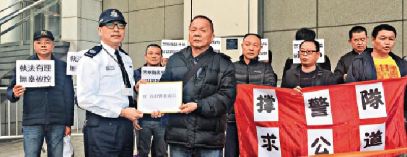 【大公報訊】記者湯淩琰報道:退休警司朱經緯於「佔旺」執勤期間,被指以警棍擊中行人而判囚三個月,引起市民不滿。昨日再有一班市民自發至灣仔警察總部遞交請願信,支持警方執法,聲援朱經緯上訴。他們強調警察在「佔中」及旺角暴亂期間,面對暴徒盡忠執法卻被重判,大大打擊警隊士氣,令警務人員不敢執法,影響香港治安。警察代表接收請願信。