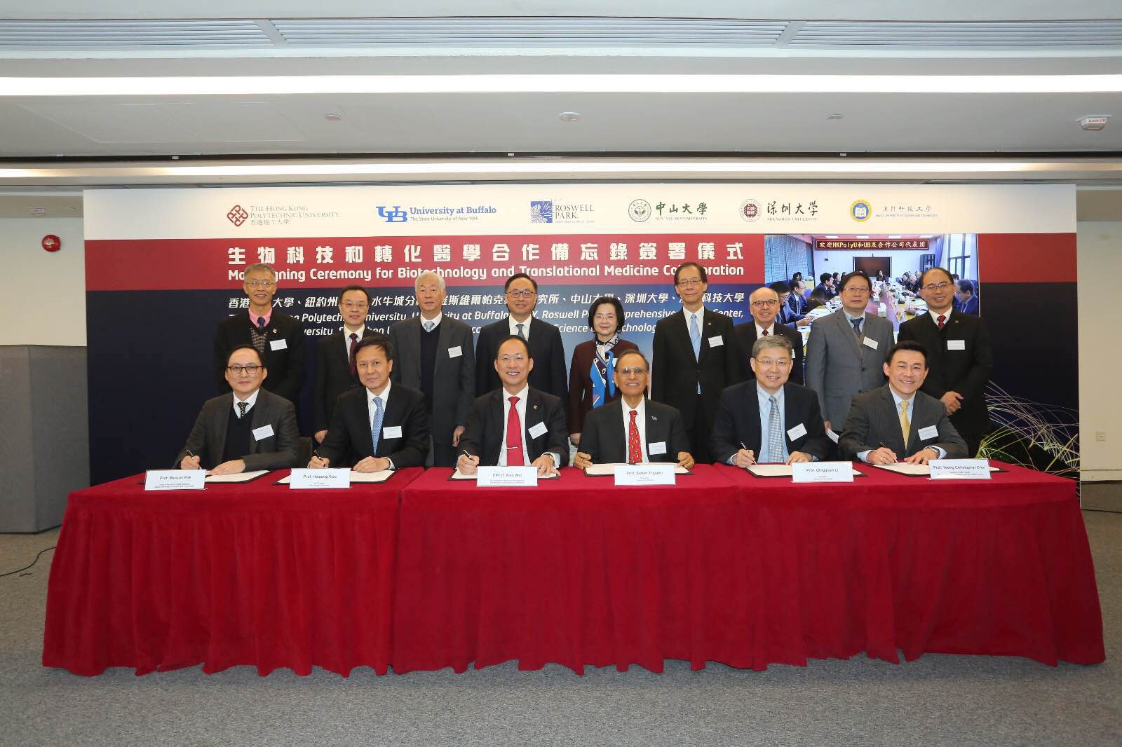 大公文匯全媒體報道:香港理工大學今日(2日)聯同粵港澳大灣區內高等院校,包括中山大學、深圳大學、澳門科技大學組織合作聯盟,並與美國紐約州立大學水牛城分校及美國羅斯維爾帕克癌症研究所達成合作意向。6間院校及研究所今日共同簽署生物科技和轉化醫學合作備忘錄簽署儀式,構建區內首個轉化醫學合作研究平台。
