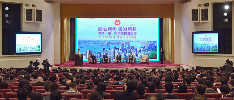 這次論壇是特區政府首次於人民大會堂舉行的大型宣講會,並得到多個中央部委包括外交部、國家發展和改革委員會、商務部、國務院國有資產監督管理委員會及國務院港澳事務辦公室等大力協助、參與。此外,今天的論壇有超過120位香港工商及專業界別領袖及超過380位來自逾170間國有企業的領導及高管人員參與,是一個非常難得的機會,讓大家在推進「一帶一路」建設的工作上進一步對接,增加相互了解,然後可以併船出海。