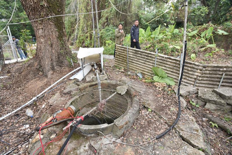 圖:沙頭角坪輋隔田村一對母子被困水井現場/大公報記者張琦攝