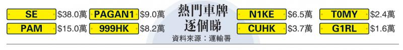 昨日在會展共拍賣272個自訂車牌,除了「CSD」,其他還有驟看似運動品牌的「N1KE」,日本女子組合「AKB 48」等,但未知是否寒風冷卻了競投熱情,出席者不多,拍賣氣氛平淡,共有69個車牌無人問津,以最低價5000元分配予申請人。