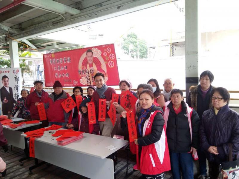 工聯會港島區立法會議員郭偉強落區為街坊寫揮春。