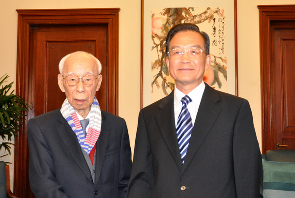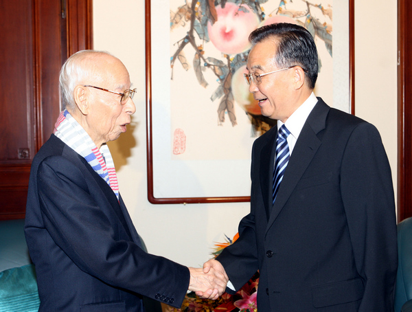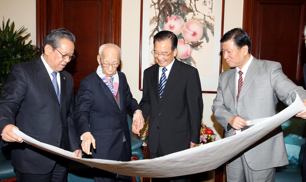 2010年8月6日,時任國務院總理的溫家寶在北京中央文史研究館會見來自香港的館員、著名學者饒宗頤先生(文匯報)