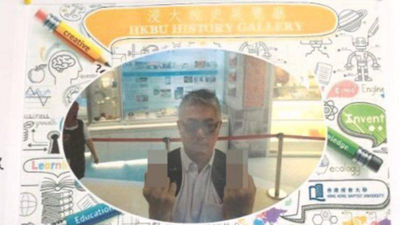 有人早前於浸大民主牆上,張貼黃偉國對着鏡頭豎不文手勢的照片,不少網民仍歷歷在目。