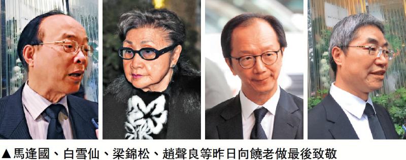 圖:馬逢國、白雪仙、梁錦松、趙聲良等昨日向饒老作最後致敬