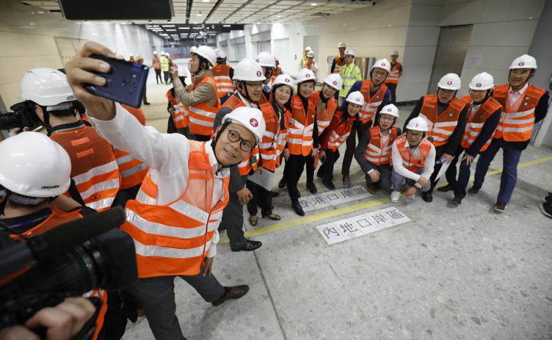 31名立法會議員昨日在運輸及房屋局局長陳帆陪同下,參觀高鐵西九龍總站。現時西九龍站已畫出清晰的黃色界線,分隔香港境和內地口岸區。陳帆強調,基本上整個「一地兩檢」的設計是不容許遊客或巿民途經的過程不受控制,而多個建制派亦認為界線劃分清晰,不會出現迷路或誤衝的情況。鐵路事宜小組委員會主席田北辰表示,期望爭取旅客可以在西九龍站至廣州南站的列車上享用免費WiFi。/大公報記者 馮瀚林