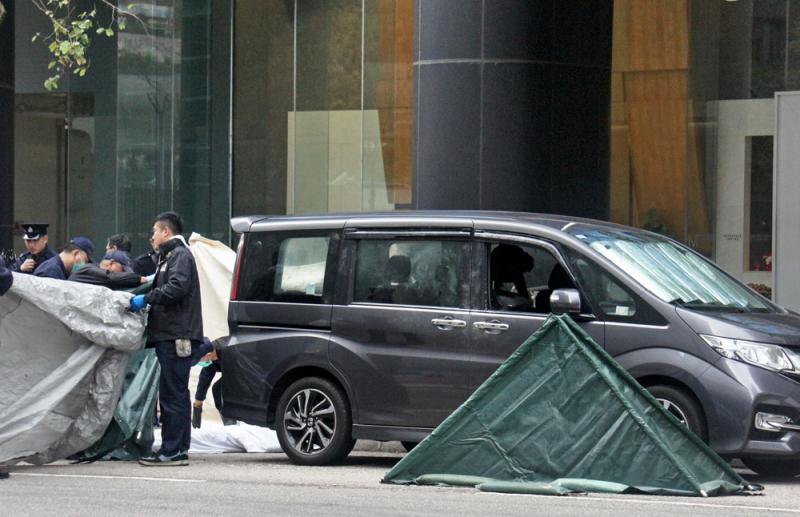 圖:母攬稚子車內燒炭亡,兩人遺體事後搬出車外