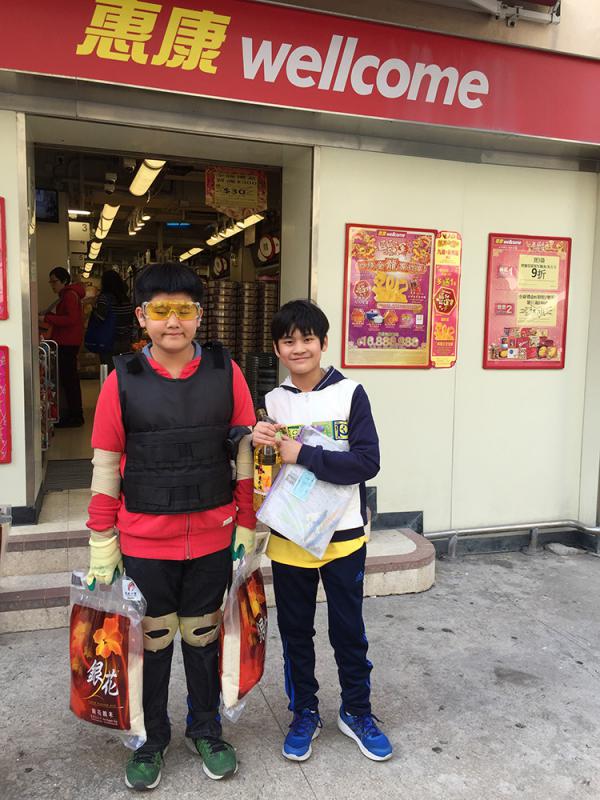圖:學生穿負重衣及眼鏡,模擬長者的身體狀態了解其生活