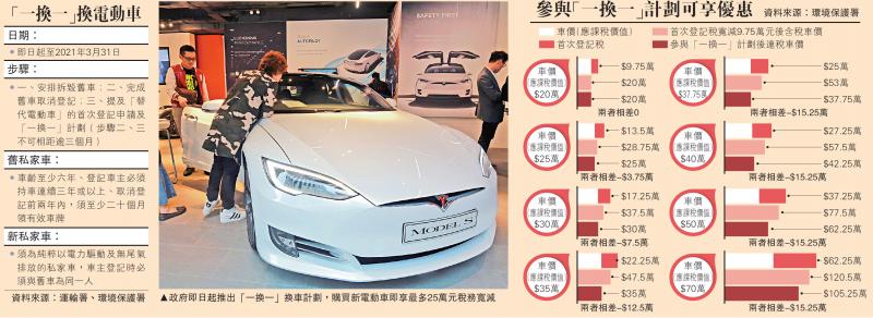 圖:政府即日起推出「一換一」換車計劃,購買新電動車即享最多25萬元稅務寬減