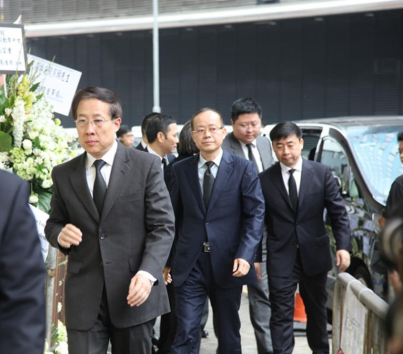 圖:從前往後:中聯辦副主任楊建平、中聯辦副主任楊健、中聯辦宣傳文體部部長朱文到場悼念