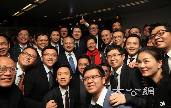 行政長官林鄭月娥、中聯辦主任王志民與與會的香港青年代表自拍。 大公網記者姚勇 攝