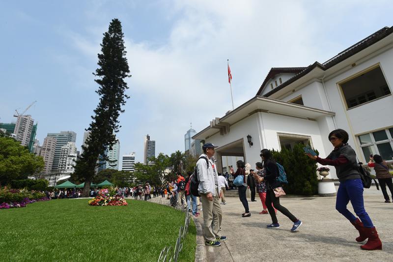 圖:禮賓府昨日舉行開放日,吸引逾萬市民到禮賓府一遊,高聳的異葉南洋杉,真如一柱擎天/大公報記者林良堅攝