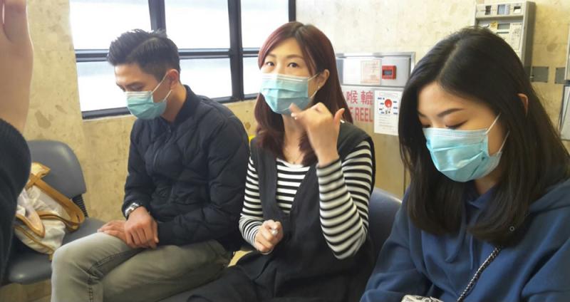 圖:傷者胞弟(左)、胞姊(中)及表妹(右)到醫院了解最新情況