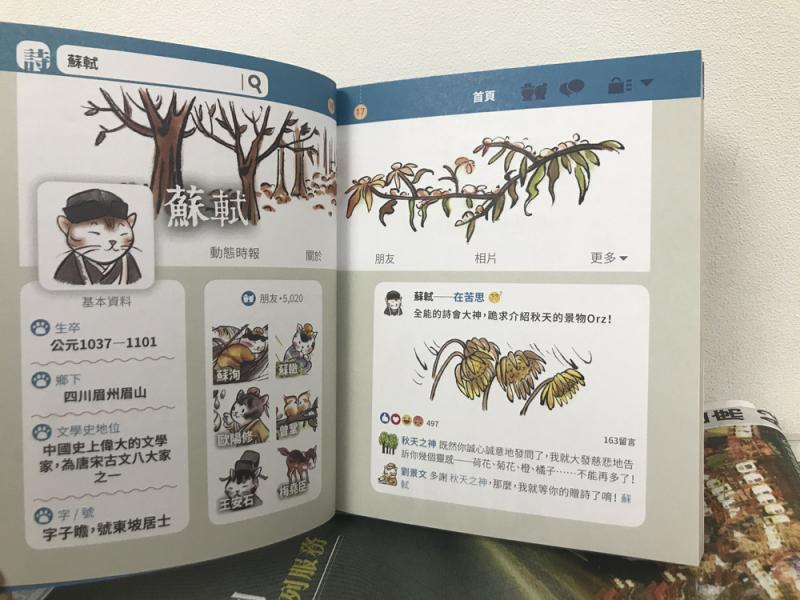 書中賞析亦不再是「沉甸甸」的文字解釋─通過二維碼(QR Code),讀者可從書本跨進電子世界,聆聽兩位本地小學生的粵語、普通話朗讀,把文字變成音韻,加強閱讀效果。書中更附設「詩人社交網」,小學生可以透過閱讀全彩的社交網絡,看看古代詩人與詩人之間的互動,增加小學生對詩人的認識。