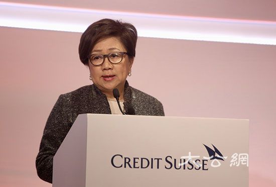 她在會上致辭時說,相信香港的發展前景仍然一片光明,其中一項優勢來自「一國兩制」。她指「一帶一路」倡議和粵港澳大灣區將為香港帶來新機遇,而香港作為國際金融中心之一,亦要與時並進,提升競爭力;最重要是能夠保持國際化,同時與中國內地和國際市場保持緊密聯繫。