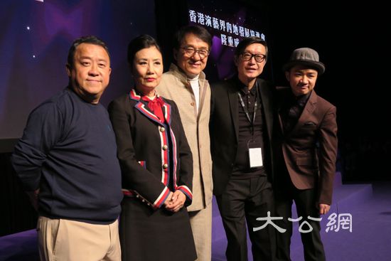 曾志偉、汪明荃、成龍、劉偉強與王祖藍接受訪問(大公報記者林良堅攝