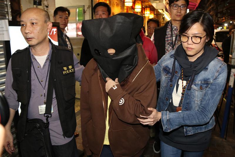 圖:柏茵旅遊女董事被捕帶返警署調查 大公報記者張琦攝