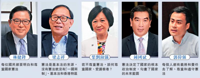 全國政協港澳台僑委員會副主任、經民聯副主席林健鋒表示,每位國民都要明白和尊重國家憲法,任何違反憲法的行為都不能接受、應予以譴責和制止,包括搞分裂、獨立等。