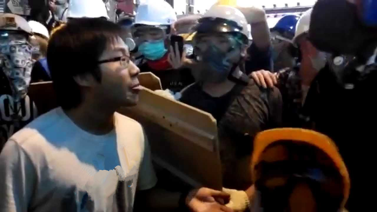 圖/法庭指黃浩銘嚴重破壞了清場命令。圖為黃浩銘(左)參與「旺暴」(電視截圖)