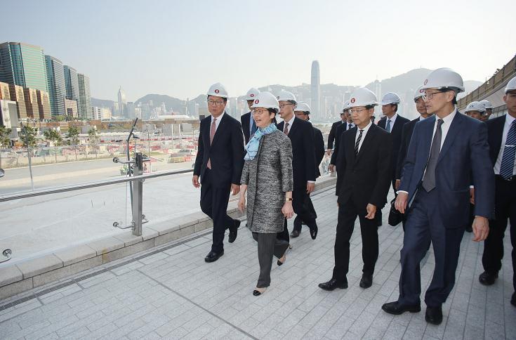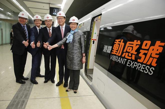 林鄭在致辭中表示,高鐵香港段項目有多個「第一」。西九龍站總建築樓面面積約43萬平方米,以建築樓面面積計是世界最大的地底鐵路站;高鐵香港段是香港第一條高速鐵路,同時亦是在本港鐵路歷史上第一次以「服務經營權」模式興建的鐵路項目。