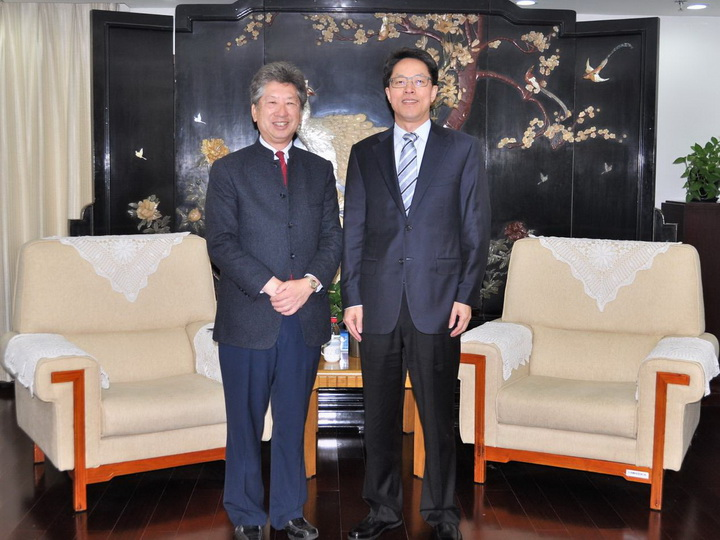 國務院港澳事務辦公室主任張曉明(右)與香港智庫「民主思路」訪京團團長湯家驊