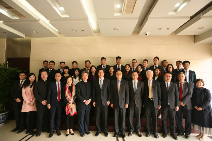 國務院港澳事務辦公室主任張曉明(前排中)、副主任馮巍(前排右六)與「民主思路」訪京團成員合影