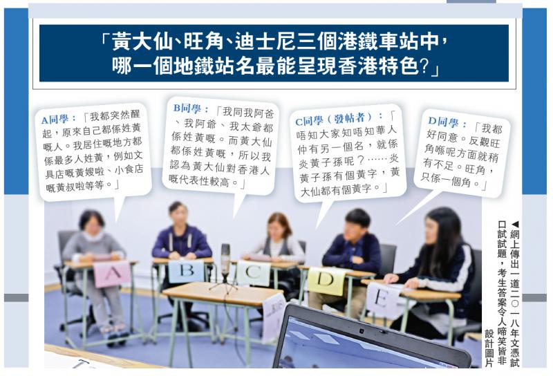 圖:網上傳出一道二○一八年文憑試口試試題,考生答案令人啼笑皆非