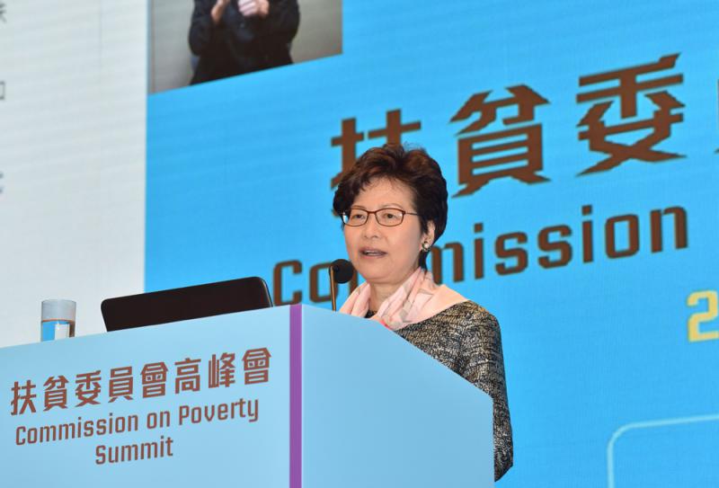 圖:林鄭月娥表示,房屋介入的扶貧效果比現金援助更有效,呼籲社會尋求共識造地建屋 政府新聞處圖片