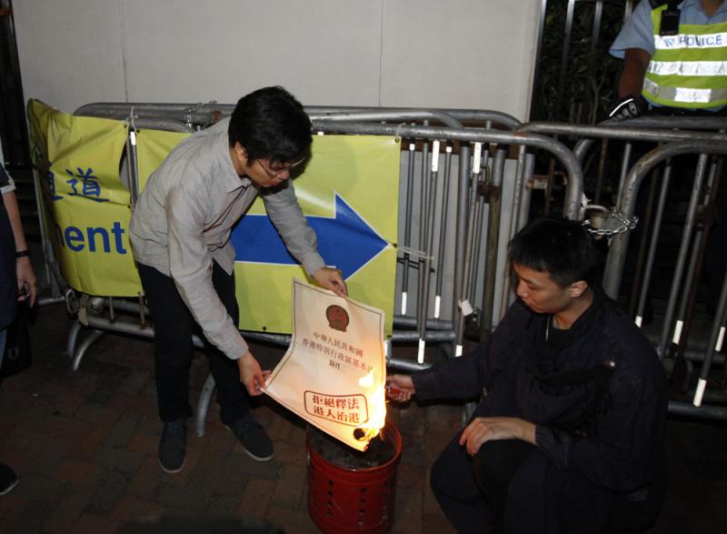 圖:區諾軒2016年參與反釋法遊行時,曾公開焚燒基本法 資料圖片
