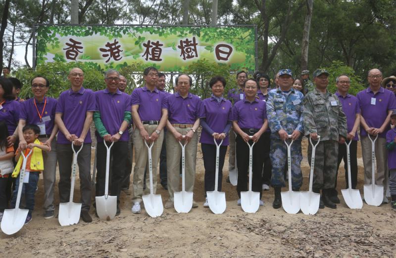 香港植樹日活動由羣力資源中心的成員機構之一「綠的歡欣」舉辦,始創於1998年,今年由西貢移師到元朗大棠舉行。行政長官林鄭月娥、中聯辦主任王志民、外交部駐港副特派員趙建凱、解放軍駐港部隊副參謀長方玉信大校和政治工作部副主任陳貴斌大校擔任主禮嘉賓。多位特區政府局長出席。