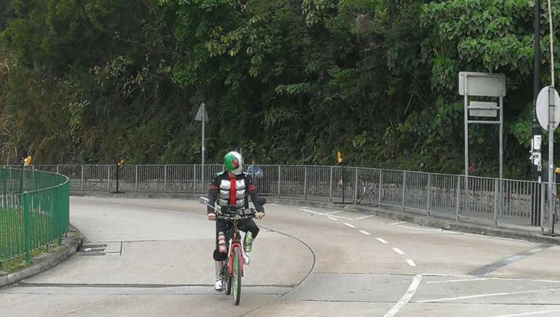 圖:網民笑稱超人因為沒有香港電單車牌,只能用單車代步