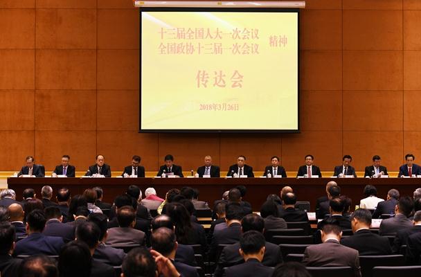 全國人大常委會委員、澳門特區立法會主席賀一誠,全國政協常委、澳門基本法推廣協會會長廖澤雲在會上分別傳達了十三屆全國人大一次會議、全國政協十三屆一次會議精神。全國政協副主席何厚鏵、澳門特區行政長官崔世安、澳門中聯辦主任鄭曉松等出席會議。