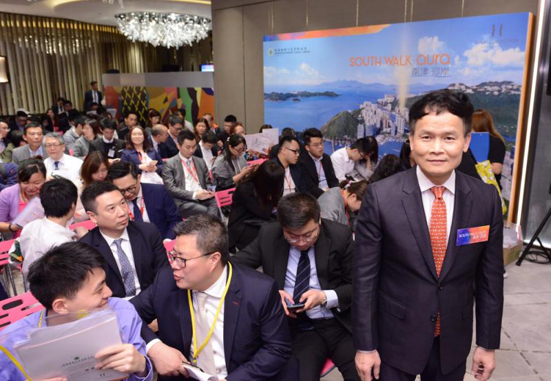 圖:林達民(右)表示,南津.迎岸現場準買家於銷售中心內排隊,秩序井然