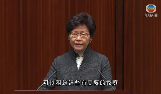 林鄭表示將放寬在職家庭津貼,協助劏房在職家庭 (電視截圖)