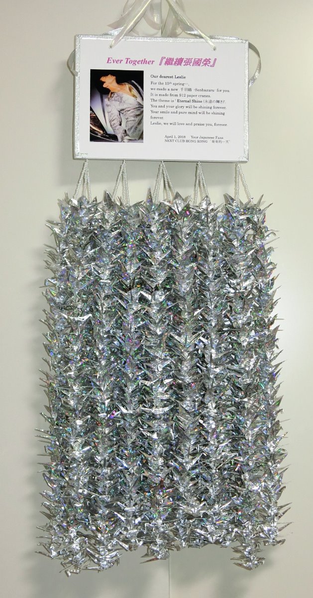 在十五周年紀念,日本「哥」迷摺了912隻銀光閃耀的千羽鶴,以代表「哥哥」永恆的光輝,並於4月1日把千羽鶴親自帶到香港寶福山送給「哥哥」:「我們最親愛的 Leslie,在第15個春天,我們為您做了一個新的千羽鶴,它由912隻紙鶴摺成,主題是《永恆的光輝》,您和您的榮譽將永遠閃亮;您的微笑和純潔的心靈將永耀光芒。Leslie, 我們永遠愛您、永遠頌讚您。」
