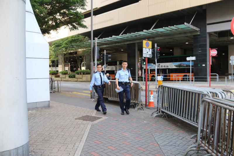 圖:警員在法院大樓外一帶巡邏 大公報記者張琦攝