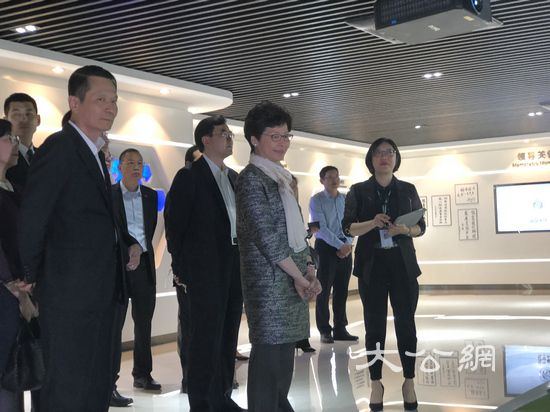 行政長官林鄭月娥今天下午到廣東中山國家健康科技產業基地參觀(黃寶儀 攝)