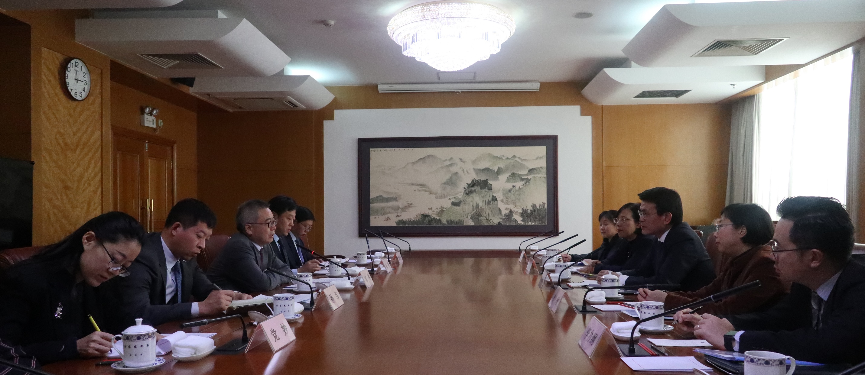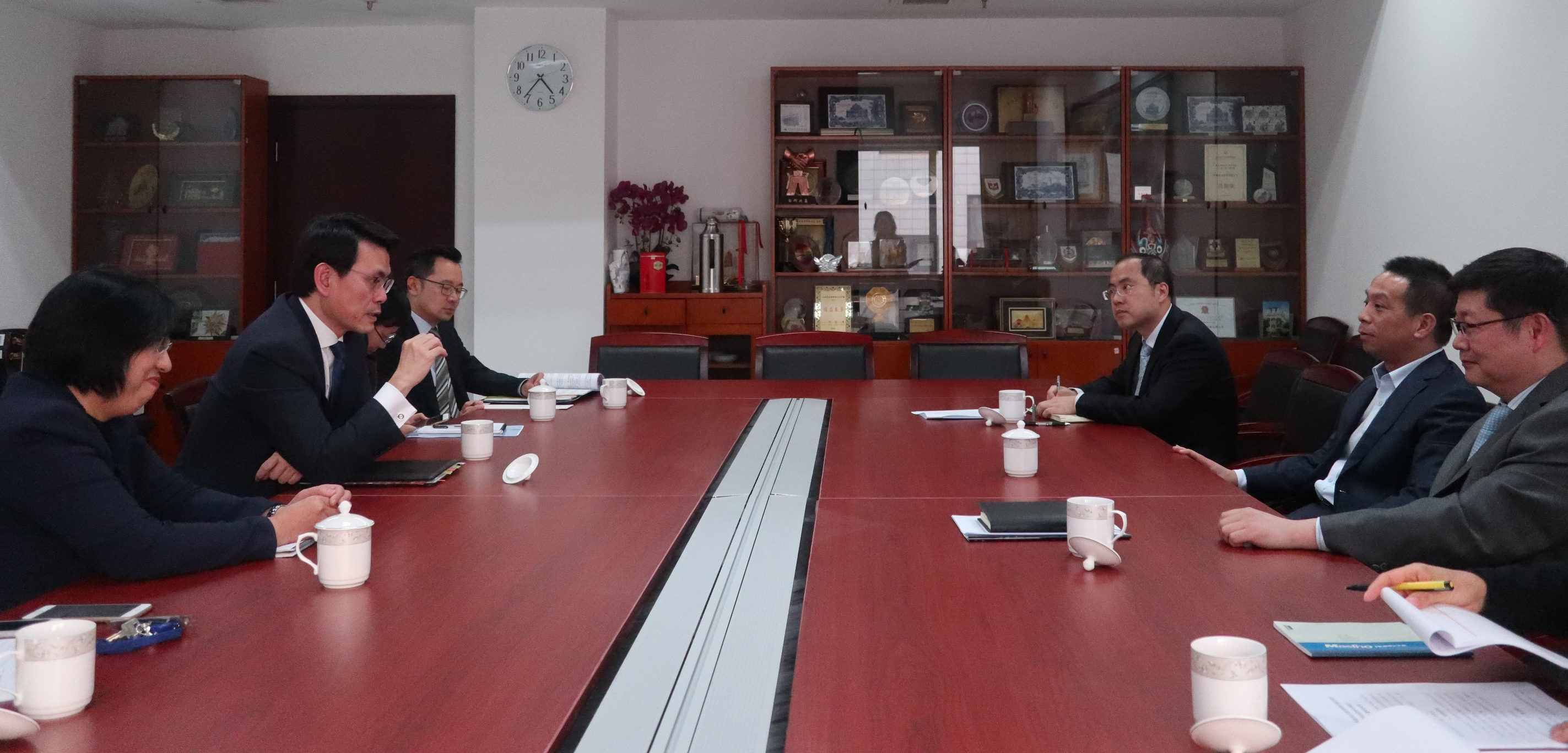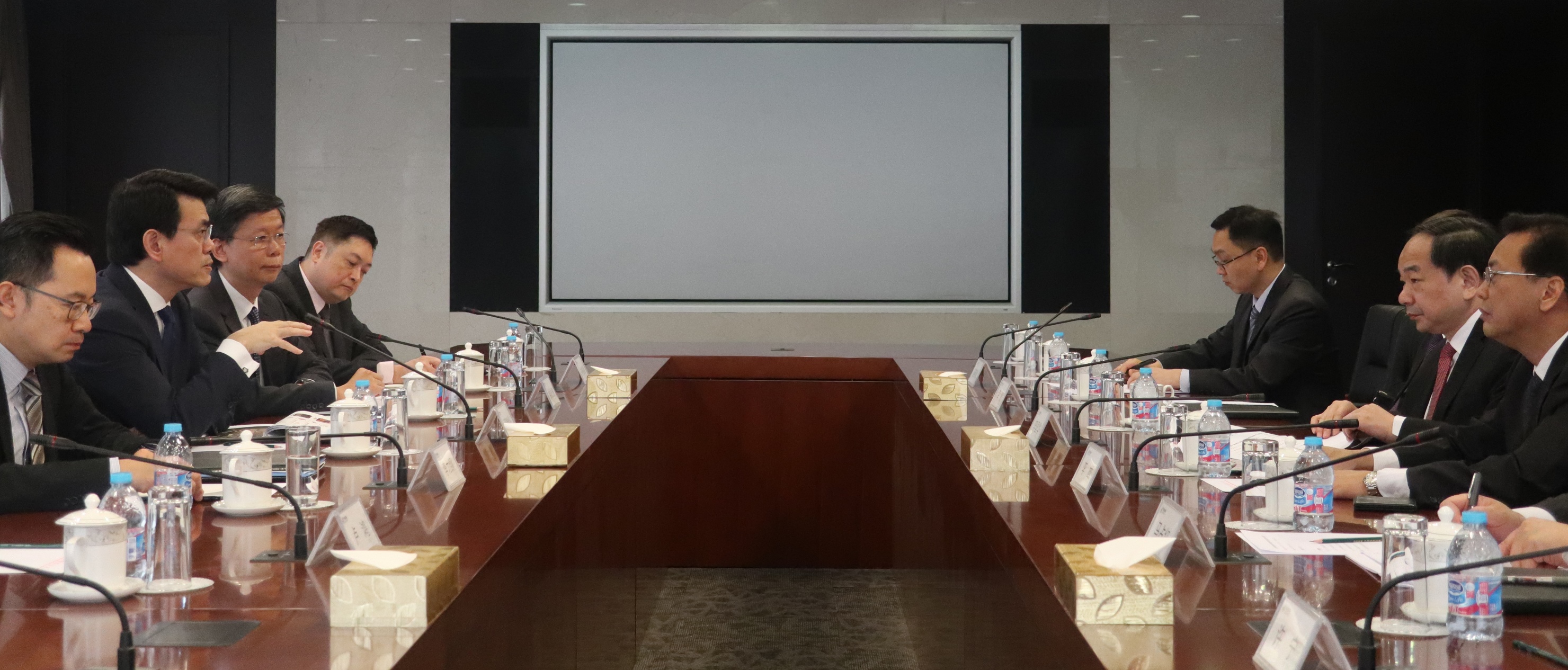 商務及經濟發展局局長邱騰華(右三)今日(29日)在北京與國家發展和改革委員會副秘書長兼國際合作司司長蘇偉(左三)會面