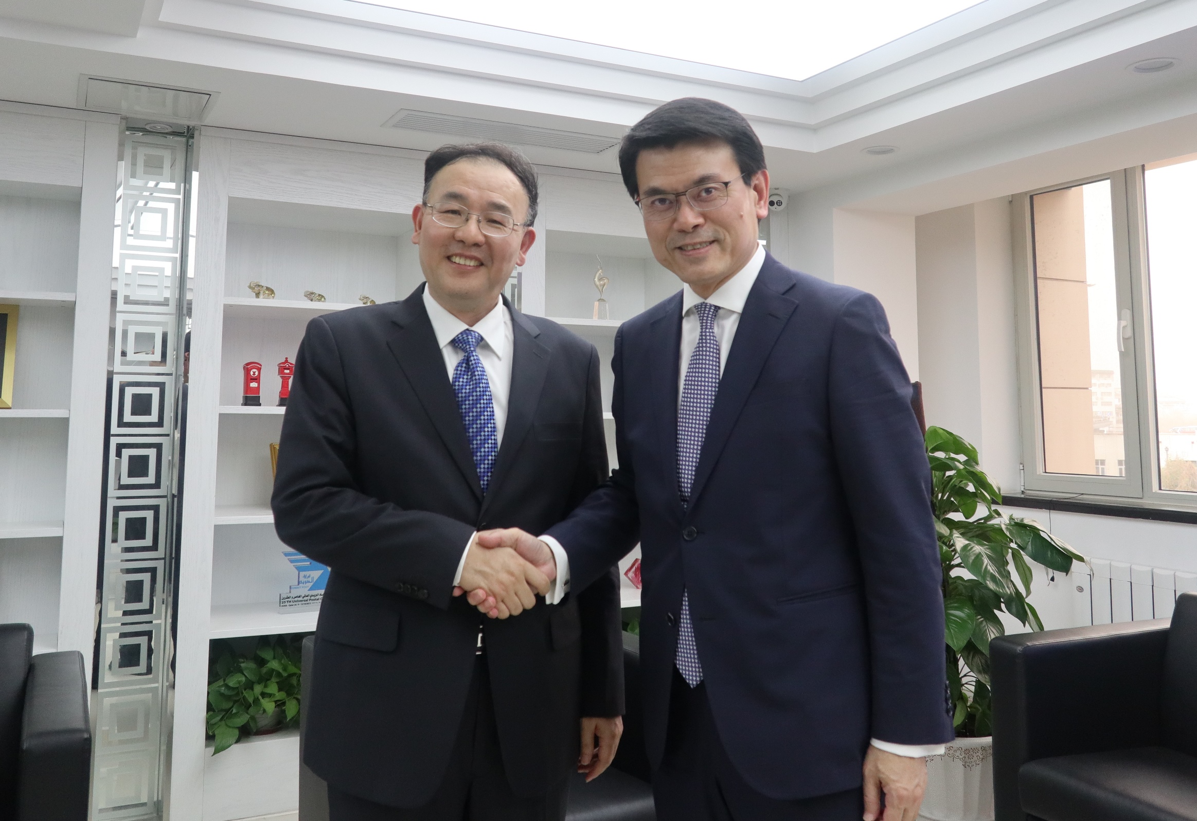 邱騰華(右)與國家郵政局局長馬軍勝會面