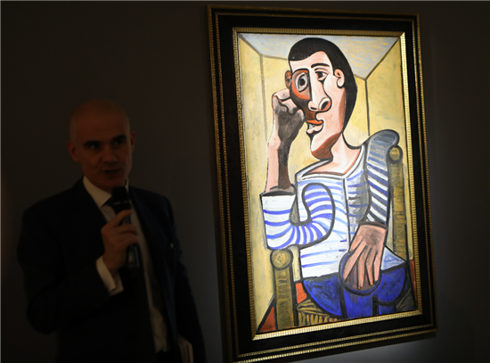 佳士得專家在傳媒預覽上向記者介紹畢加索的作品《水手》
