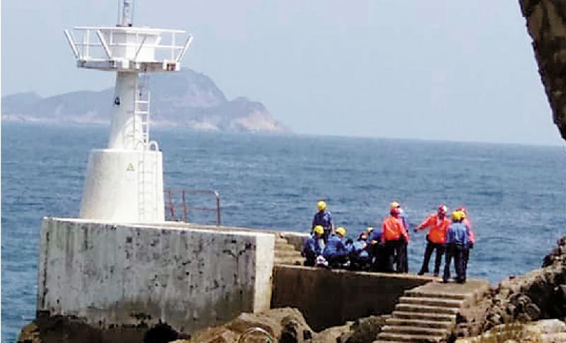 圖:男子攀東龍島燈塔跌傷,救援人員在現場替他急救 網上圖片