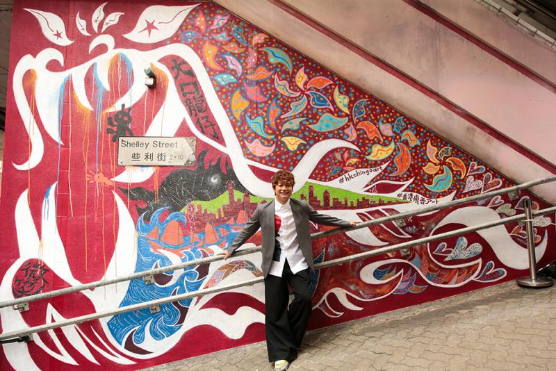 街頭藝術一般指在公共場所進行創作的藝術。由於不受傳統藝術場所設限,發揮空間可以天馬行空。日本歌星香取慎吾早前獲邀請來港獻技,在中環至半山自動扶手電梯旁的牆身繪畫壁畫,紅色底色上,有不少象徵香港的圖案,帆船、洋紫荊、維港夜景等,盡顯香港特色。