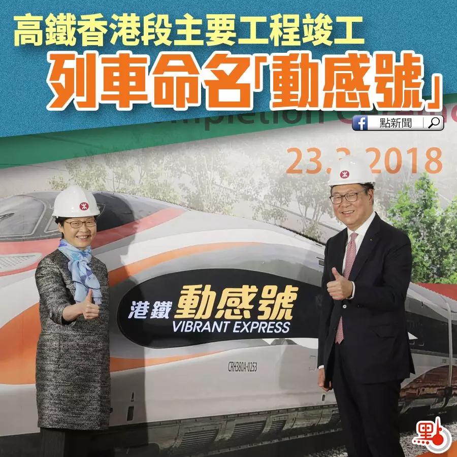 3月23日,港鐵公司舉行廣深港高鐵香港段項目主要工程竣工典禮,宣布整體工程已完成99%,9列高鐵列車被命名為「動感號」,英文名稱「Vibrant Express」,日後會將「動感號」字眼展示在車身之上。