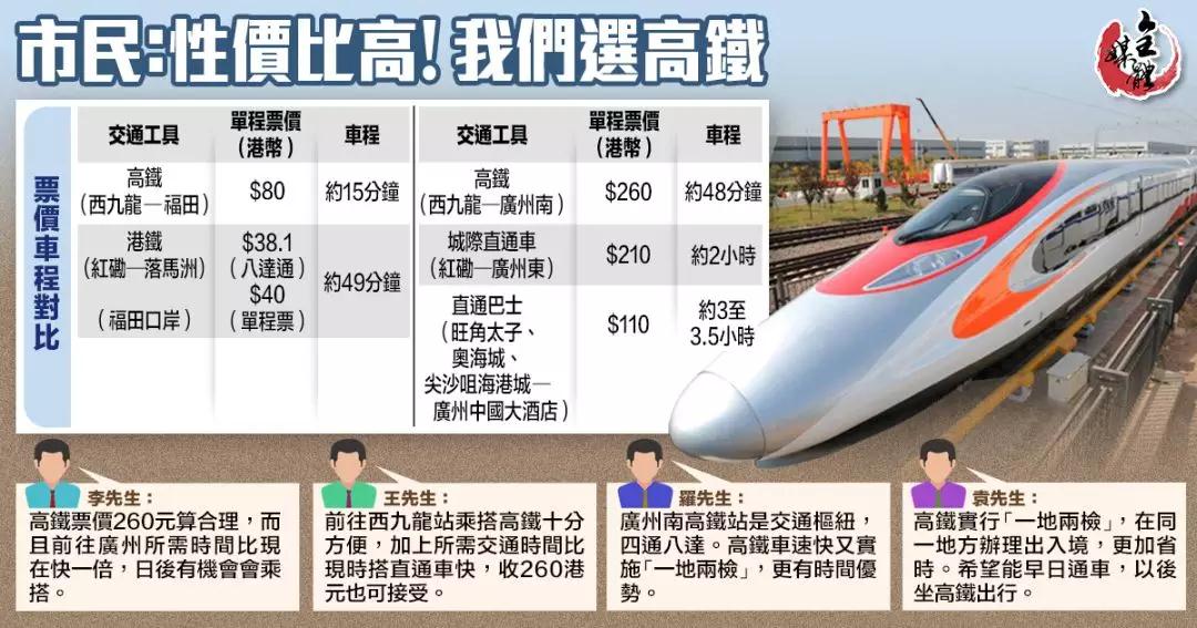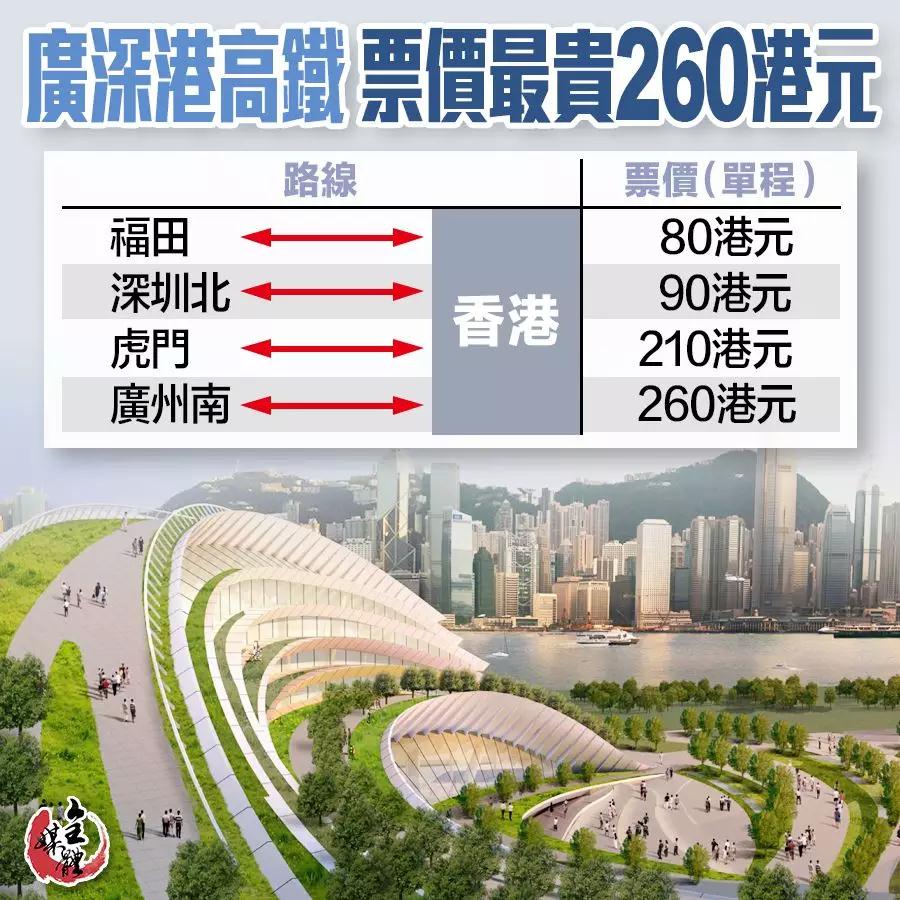 票價方面,從西九龍出發,到福田、深圳北、虎門、廣州南的票價順序為80港元、90港元、210港元、260港元。