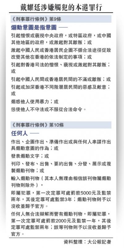 香港中小型律師行協會創會會長陳曼琪表示,雖然戴耀廷的言論不是在香港發表,但是他回香港在Facebook發帖,轉載自己有關「港獨」的言行,有可能涉嫌觸犯《刑事罪行條例》第9條和第10條。