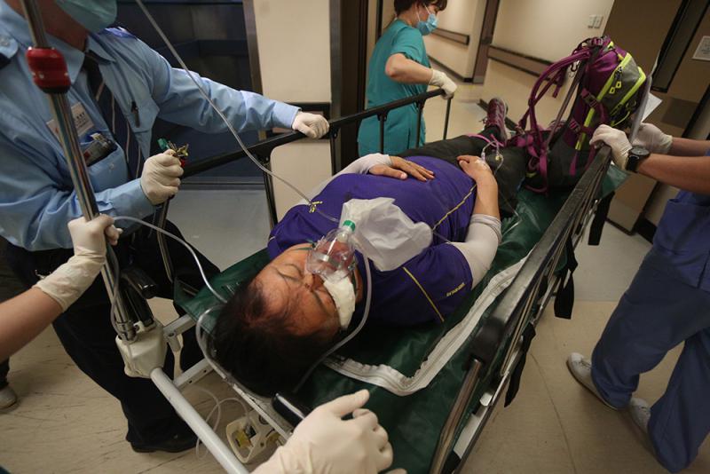 警方聯同消防員接報登山救援,但礙於山路崎嶇,遂通知政府飛行服務隊派出直升機協助,終將謝婦救起,送往東區醫院,經救治後情況穩定。約兩小時後,姓黎(35歲)男子與三名友人到西貢水牛山登山期間,疑體力不支及懷疑中暑,無法完成行程,由直升機送往東區醫院治理。政府飛行服務隊發言人表示,截止昨午六時,共接獲五宗行山人士求助個案,除上述水牛山及蚺蛇尖外,另三宗發生於塔門、八鄉及馬鞍山。