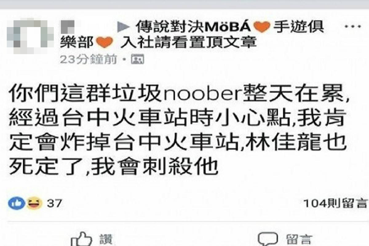3月23日,有人在台灣一個遊戲社群發帖,聲稱要殺台中市長林佳龍及炸台中火車站。台灣警方經調查後,拘捕兩名均為14歲的中學生。其中一人供稱,有關行徑是受香港一名袁姓網友慫慂。