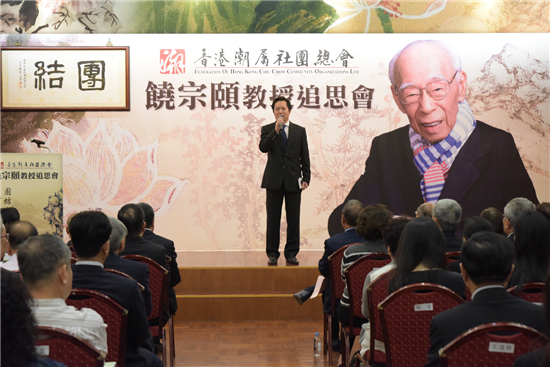 香港潮屬社團總會創會主席陳偉南致辭懷念饒宗頤(圖:香港中通社)